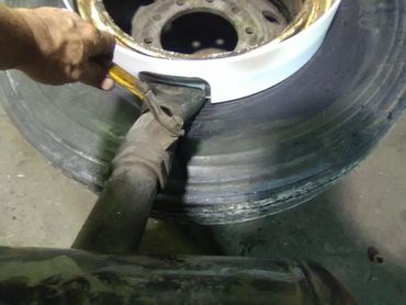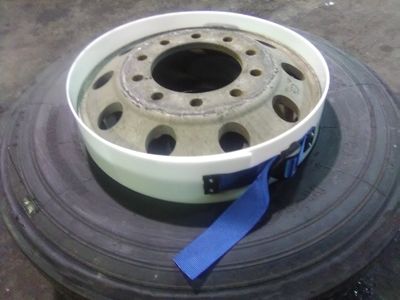Designed to work WITH an air blast type tire bead seater, The Tire Ring creates a barrier between the bead area of the tire and the rim forcing substantially more of the air blast into the tire. Even in extreme cases, as in the video below, enough pressure is retained inside the tire to hold the sidewalls up and the beads firmly against the rim.